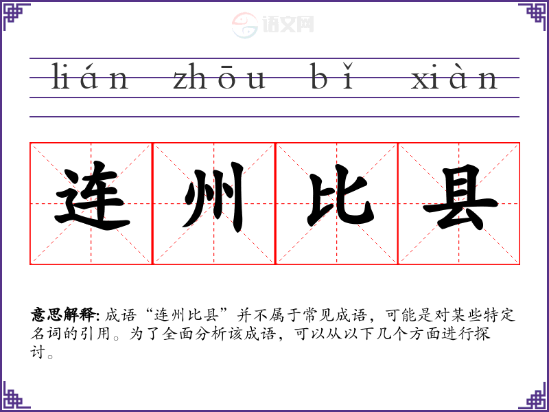 成语“连州比县”并不属于常见成语,可能是对某些特定名词的引用。为了全面分析该成语,可以从以下几个方面进行探讨。