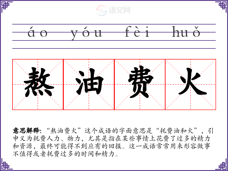- 文学作品:在文学作品中,作者可能用“熬油费火”来形容某个角色在追求目标时的辛苦和无奈。