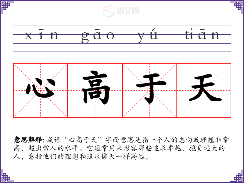 成语“心高于天”字面意思是指一个人的志向或理想非常高,超出常人的水平。它通常用来形容那些追求卓越、抱负远大的人,意指他们的理想和追求像天一样高远。