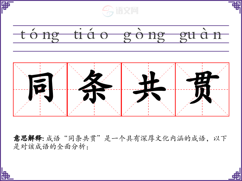 成语“同条共贯”是一个具有深厚文化内涵的成语,以下是对该成语的全面分析: