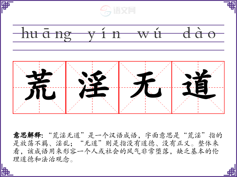 该成语的来源并不特定于某一历史典故,但其构成的词汇在**古代文献中有明确的使用。如《礼记》中提到的“无道”便与道德伦理有关,而“荒淫”的概念在许多经典文献中都有涉及,通常用来抨击那些追求享乐而不顾社会道德的人。