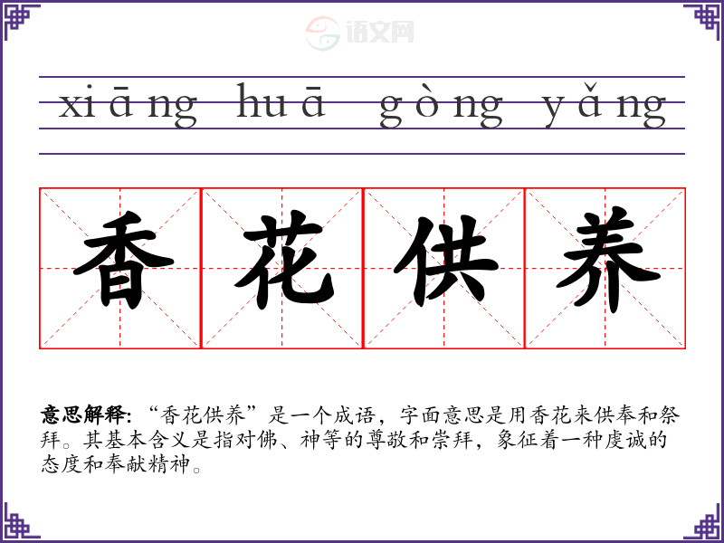 “香花供养”是一个成语,字面意思是用香花来供奉和祭拜。其基本含义是指对佛、神等的尊敬和崇拜,象征着一种虔诚的态度和奉献精神。