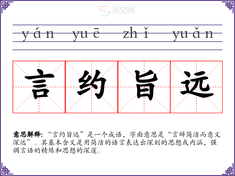 “言约旨远”是一个成语,字面意思是“言辞简洁而意义深远”。其基本含义是用简洁的语言表达出深刻的思想或内涵,强调言语的精炼和思想的深邃。