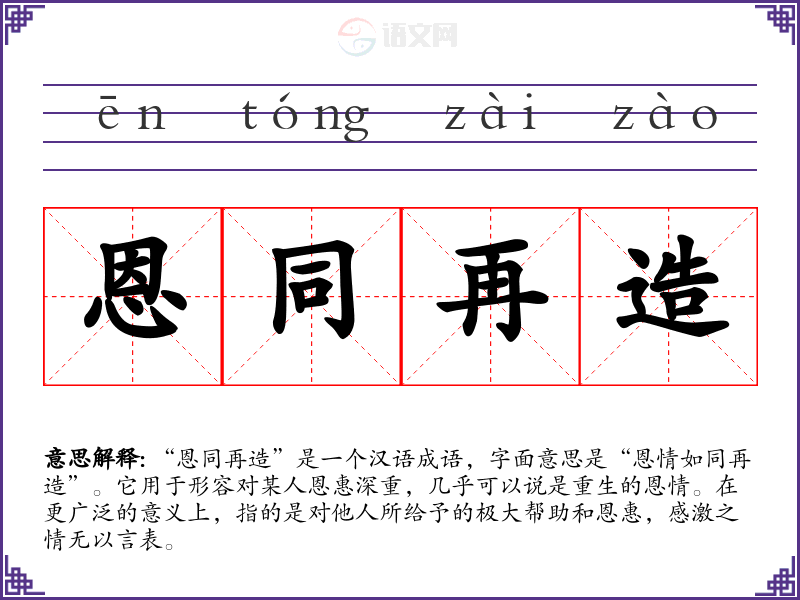 “恩同再造”让我联想到深厚的人际关系和无私的帮助。它传达出一种温暖和感动的情感,让人意识到在生活中,有多少人愿意在背后默默支持我们。正是这种恩情,构成了我们生活的美好。