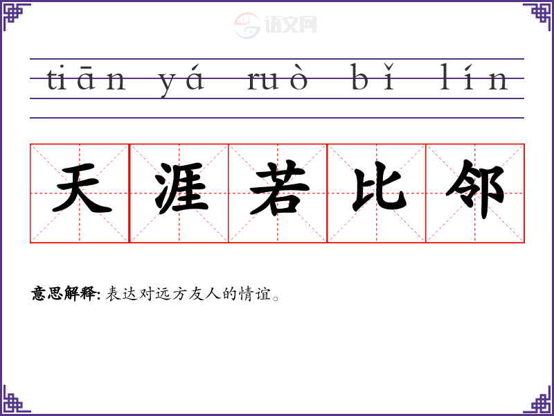 唐·王勃《送杜少府之任蜀州》:“海内存知己,天涯若比邻。”