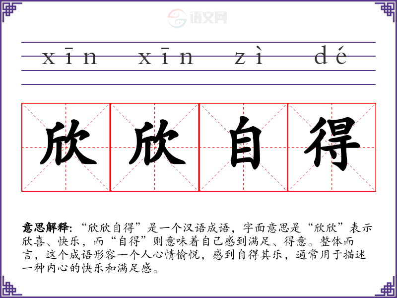 通过对“欣欣自得”的学,我意识到这个成语不仅仅是一种表达方式,它反映了人们对快乐与满足的追求。在我的语言学和表达中,懂得如何使用这样的成语能够更好地传达情感和思想,增添语言的表现力。