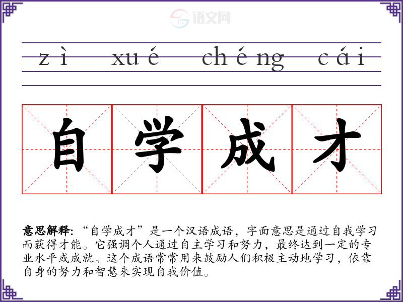 “自学成才”是一个汉语成语,字面意思是通过自我学而获得才能。它强调个人通过自主学和努力,最终达到一定的专业水平或成就。这个成语常常用来鼓励人们积极主动地学*,依靠自身的努力和智慧来实现自我价值。
