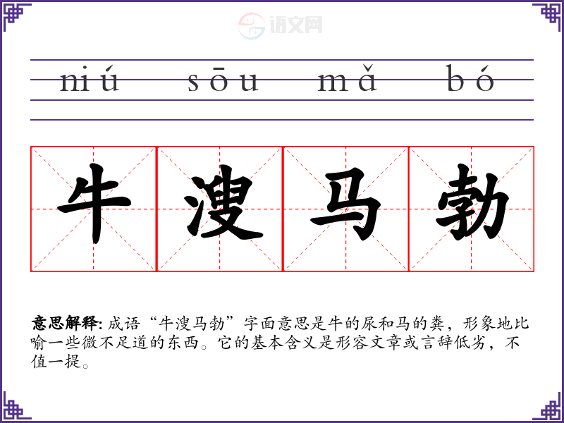 成语“牛溲马勃”字面意思是牛的尿和马的粪,形象地比喻一些微不足道的东西。它的基本含义是形容文章或言辞低劣,不值一提。