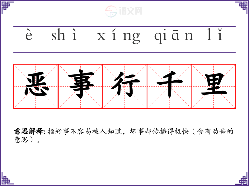 《旧唐书·柳公权传》:“恶事行千里,善言不出门。”