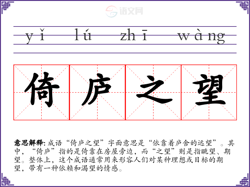 - 同义成语:渴望、期盼、希望等。这些词汇都带有对未来美好事物的期待,但“倚庐之望”更强调依靠和眺望的姿态。
