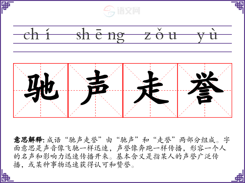 “驰声走誉”让我联想到那些在某一领域取得了卓越成就的人,他们的努力和才华不仅得到了认可,更是在社会上产生了广泛的影响力。这种成就感和影响力往往激励着更多的人追求自己的目标。