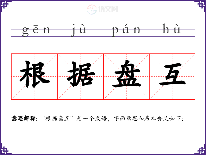 “根据盘互”是一个成语,字面意思和基本含义如下: