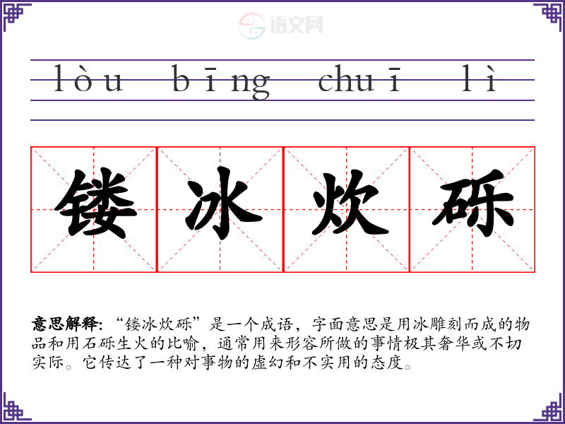 “镂冰炊砾”是一个成语,字面意思是用冰雕刻而成的物品和用石砾生火的比喻,通常用来形容所做的事情极其奢华或不切实际。它传达了一种对事物的虚幻和不实用的态度。