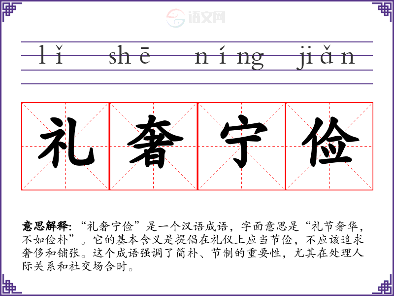 - 日常对话:在朋友之间谈论聚会或婚礼时,可以用“礼奢宁俭”来提醒大家不要追求奢华,而应关注意义。