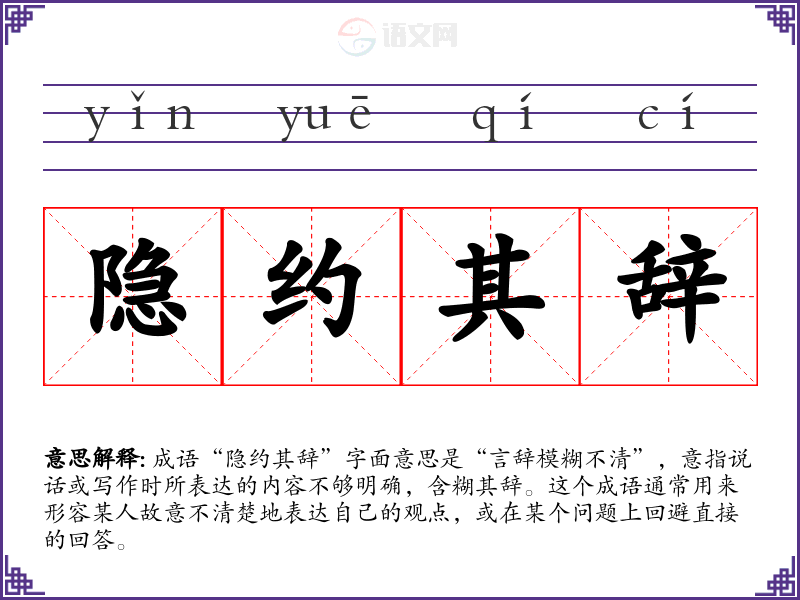 通过对成语“隐约其辞”的学,我认识到语言的模糊性和含蓄性在沟通中是双刃剑。它既可以丰富表达,也可能导致误解。在语言学和表达中,掌握这种表达方式有助于更好地理解文化背景和人际关系的复杂性。