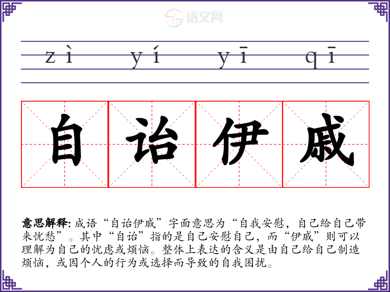- 反义成语:心旷神怡、心如止水。与“自诒伊戚”形成鲜明对比,表达一种内心的平静和无忧。