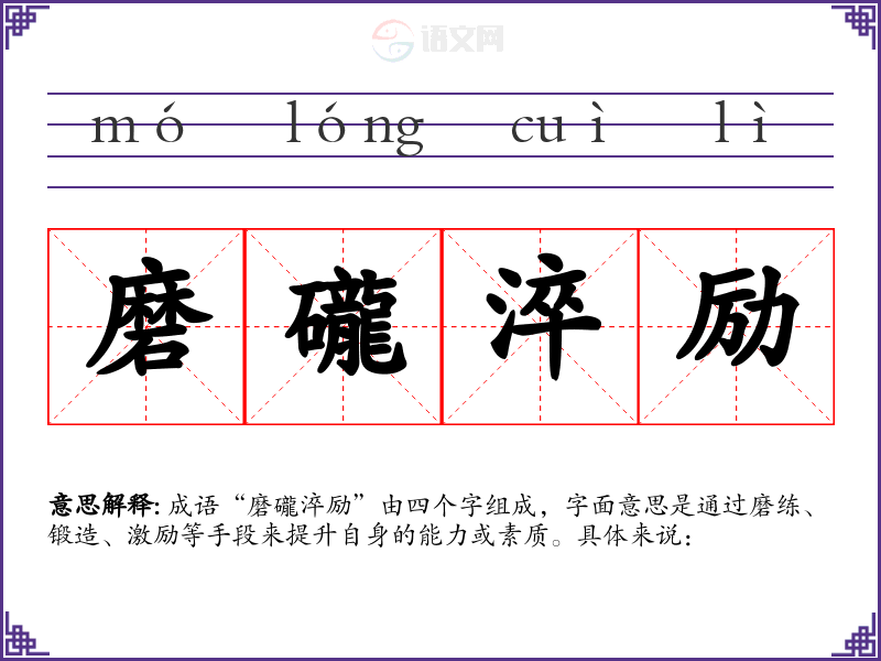 - 磨:磨练、磨砺,意味着通过实践和挑战来提高。