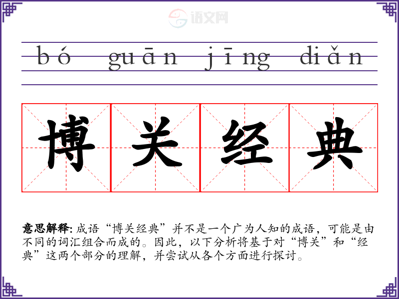 成语“博关经典”并不是一个广为人知的成语,可能是由不同的词汇组合而成的。因此,以下分析将基于对“博关”和“经典”这两个部分的理解,并尝试从各个方面进行探讨。