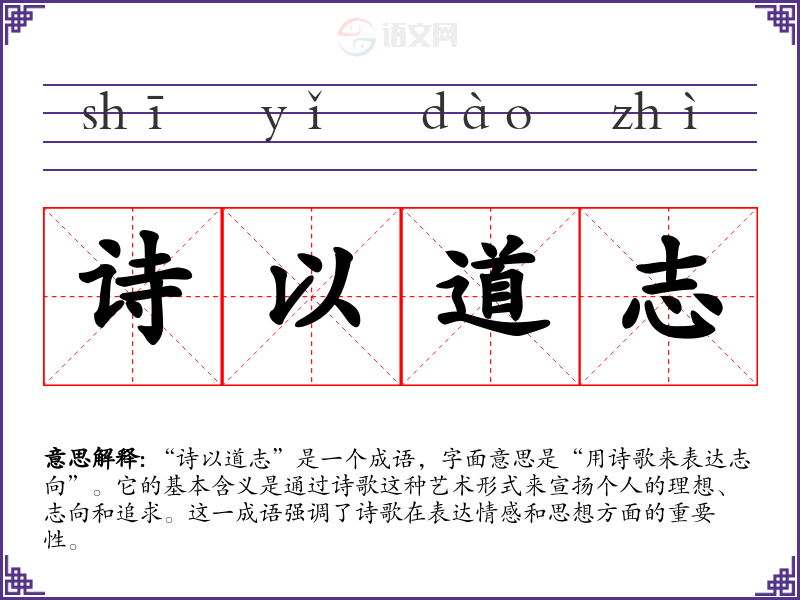 - 日常对话:人们在讨论文学或艺术时,可能会提到“诗以道志”来强调诗歌的重要性。