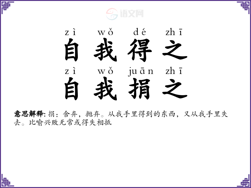 捐:舍弃,抛弃。从我手里得到的东西,又从我手里失去。比喻兴败无常或得失相抵