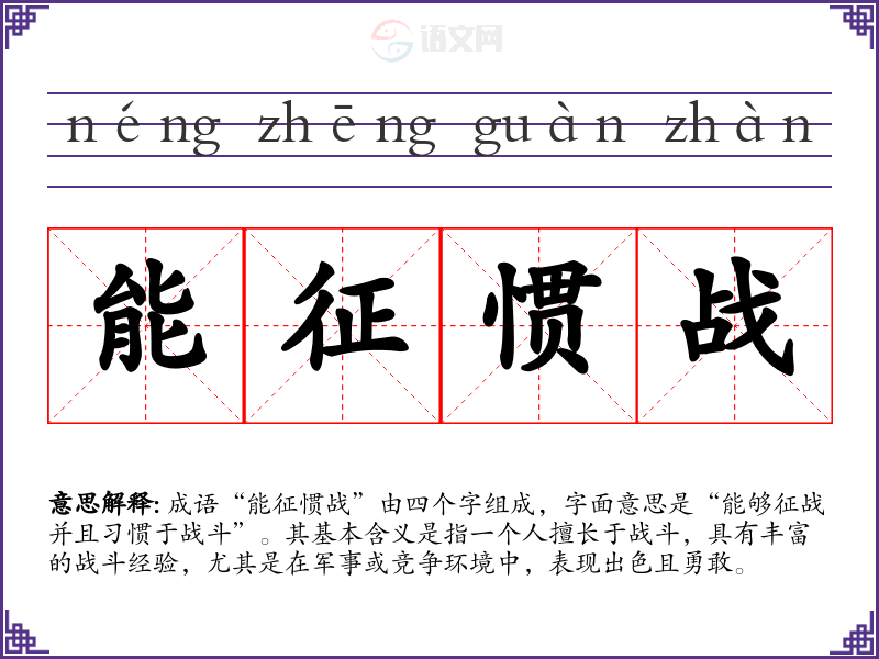 成语“能征惯战”由四个字组成,字面意思是“能够征战并且*惯于战斗”。其基本含义是指一个人擅长于战斗,具有丰富的战斗经验,尤其是在军事或竞争环境中,表现出色且勇敢。