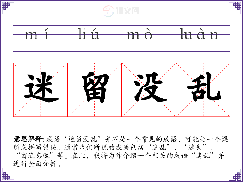 成语“迷留没乱”并不是一个常见的成语,可能是一个误解或拼写错误。通常我们所说的成语包括“迷乱”、“迷失”、“留连忘返”等。在此,我将为你介绍一个相关的成语“迷乱”并进行全面分析。