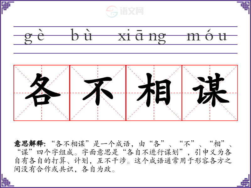 各不相谋字义分解