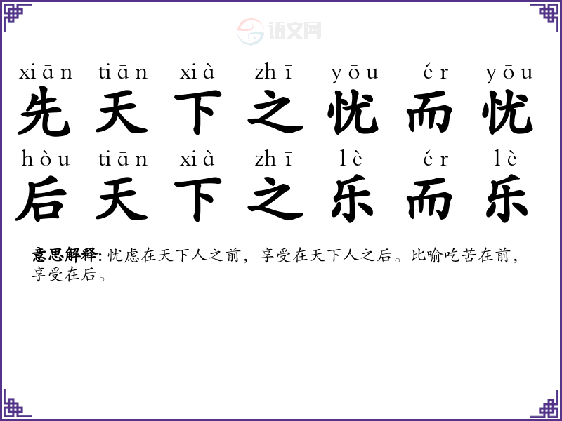 先天下之忧而忧,后天下之乐而乐成语接龙