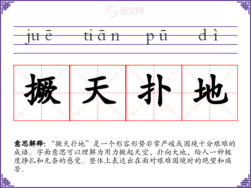 在文学作品中,作者常用“撅天扑地”来描绘人物在逆境中无助的状态,比如在描述战乱、饥荒等极端情境时。在日常对话中,可能用于形容工作压力、生活困境等,比如:“最近工作太忙,我真是撅天扑地,喘不过气来。”
