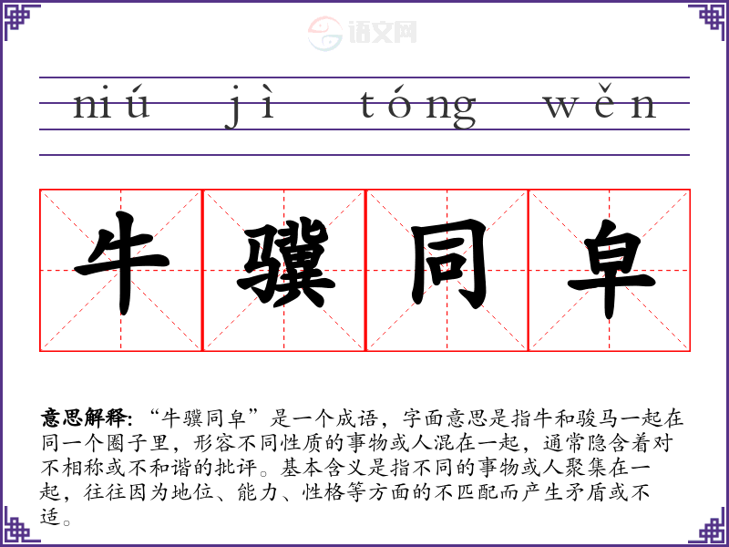 通过对“牛骥同皁”的学,我认识到在团队合作和人际交往中,考虑到个体的差异性和适配性是非常重要的。这不仅有助于提升工作效率,也能减少摩擦和冲突。在今后的语言学和表达中,我将更加注重用词的准确性和适当性,以便更好地传达意思。