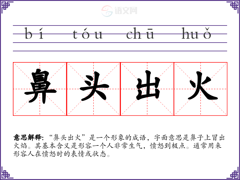 “鼻头出火”并没有确切的历史典故,但其形象化的表达方式可以追溯到古代文学中对愤怒的描写。古人常用火来象征情绪的激烈,因此这个成语的产生很可能与人们对于愤怒这种情绪的直观理解有关。