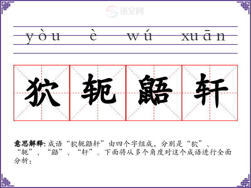 成语“狖轭鼯轩”由四个字组成,分别是“狖”、“轭”、“鼯”、“轩”。下面将从多个角度对这个成语进行全面分析: