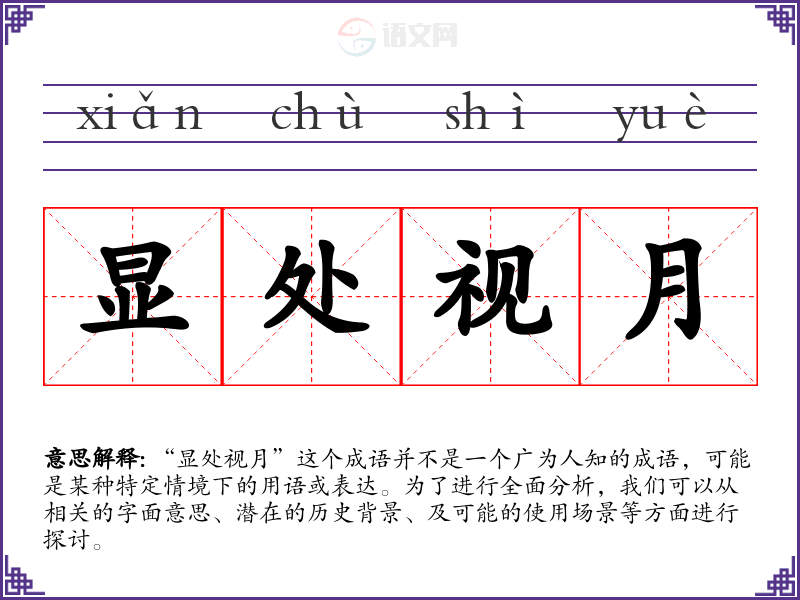 “显处视月”这个成语并不是一个广为人知的成语,可能是某种特定情境下的用语或表达。为了进行全面分析,我们可以从相关的字面意思、潜在的历史背景、及可能的使用场景等方面进行探讨。