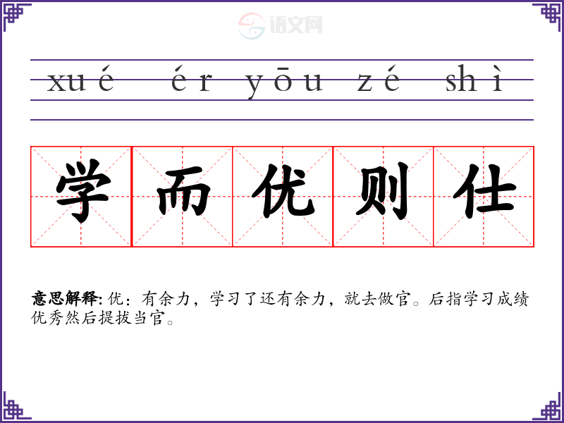 优:有余力,学习了还有余力,就去做官。后指学习成绩优秀然后提拔当官。