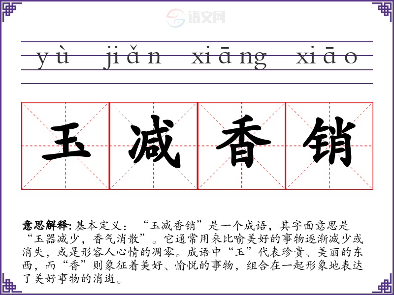 反思与总结: “玉减香销”不仅是一个成语,更是一种情感的寄托,提醒我们珍惜当下的美好。它在语言学习和表达中具有重要性,帮助我们更好地理解和表达对生活的感受。
